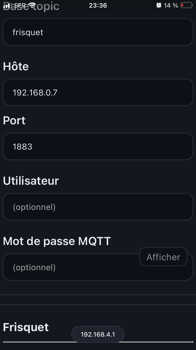 Je me connecte au réseau Wifi créé par le Heltec (SSID OpenFrisquetVisio-Setup, mot de passe frisquetconfig)
