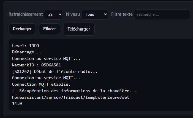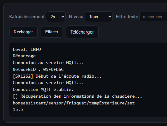 Et si je regarde dans les logs du Heltec via le portail web, j’ai ça