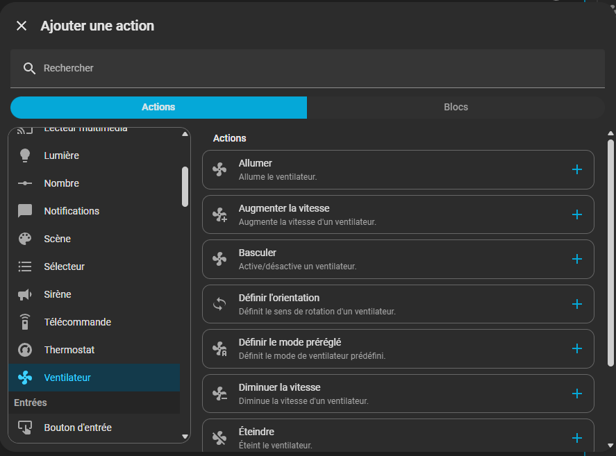 Ah merci encore, jamais utilisé les scènes, donc je découvre, voilà j’ai fait une scéne qui dit ventilateur ON et vitesse 10%, mais quand je vais dans le scheduler et que je tente d’ajouter cette scène en Action, elle n’est pas proposée dans les choix.