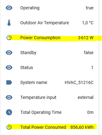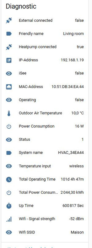 Note : Le outdoor Air Temperature est bizarre, il ne fait pas 10°c dans mon jardin… Par contre si c’est l’air interne de l’unité extérieure pourquoi pas, mon unité était en mode climatisation. Je n’ai pas eu le temps de creuser.