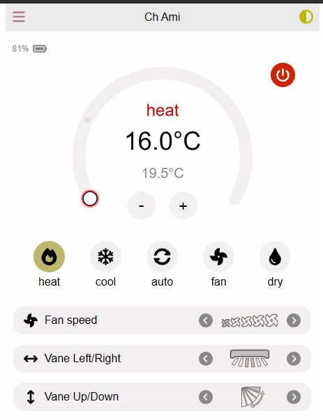 - le changement de mode du module intérieur me paraît un peu trop local par rapport au comportement que j’avais avec la télécommande ou MELCloud.
