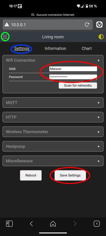 Connectez vous au réseau WIFI du module nommé « HeatPump - xxxx » ou « Factory - xxxx ».