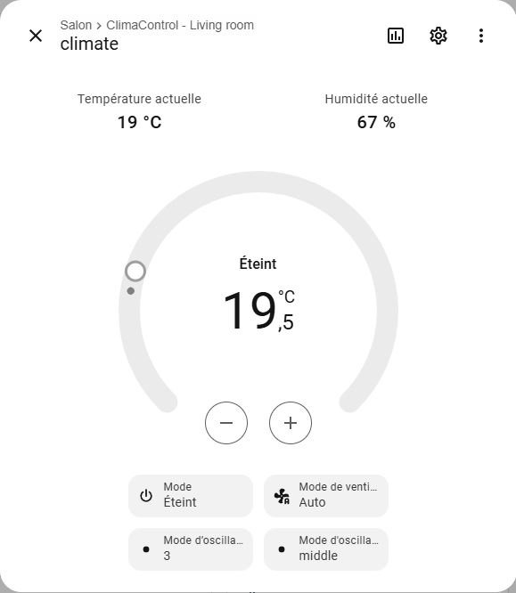 Il sera remonté sous Home Assistant sous la forme : ClimaControl - FriendlyName
