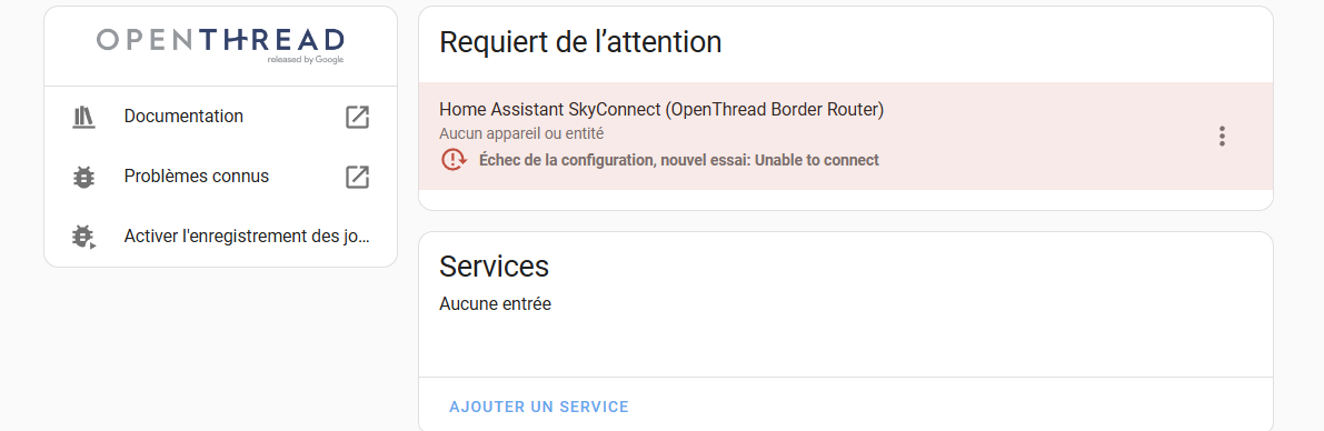 Mon réseau thread est HS… je ne sais pas pourquoi (mais ma serrure NUKI 4 n’est connectée qu’en WIFI en attendant);