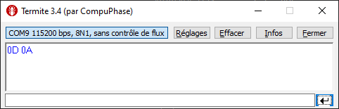 J’ai ensuite vérifié que l’ensemble soit toujours fonctionnel en connectant ensemble le « pin 3 » avec « le pin 6 » au bout de mon adaptateur. J’obtiens bien un écho de mes caractères donc tout va bien.