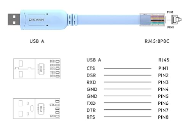 Du coup j’ai acheté un câble de console CISCO avec chipset FTDI dont voici le cablage :