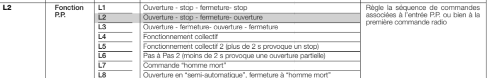 Et pour la programmation de la L4 je dois le mettre sur quelle parametre par rapport a ton tableau.