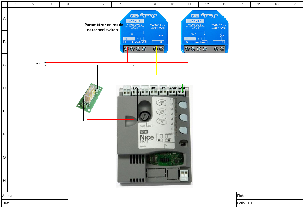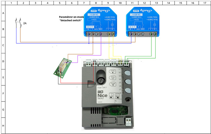 Je voudrais connecter 2 modules Shelly 1plus sur mon portail Nice NKA3.