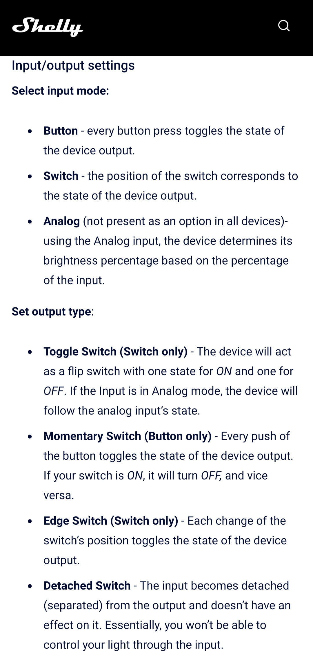 Après je sais pas si il y a une différence dans la logique de configuration avec les autres Shelly qui ont SW pour l’entrée et O/I pour le relais de sortie