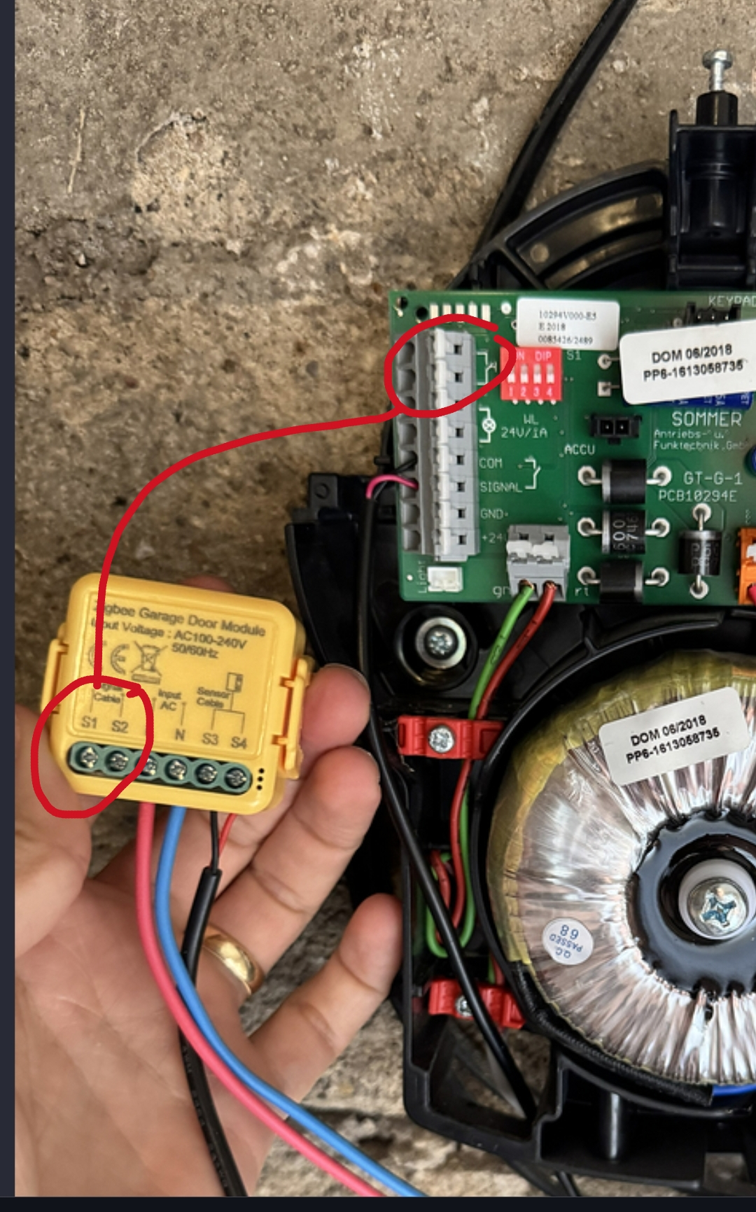 Voici les branchements (sur la photo j’avais débranché pour faire un test, mais S1 module c’était branché sur COM et S2 sur le SIGNAL).