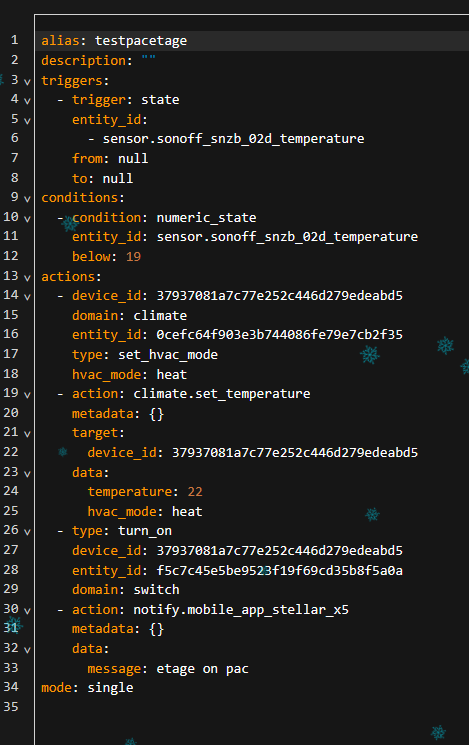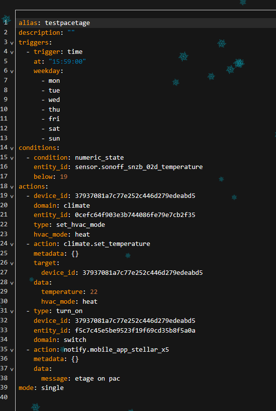 Merci de ton aiguillage. Ca ma permis de fouiner et trouver une automatisation qui semble fonctionner ( J’ai testé aussi en sens inverse avec une température tres basse voir si il se déclenchait .. et non) :