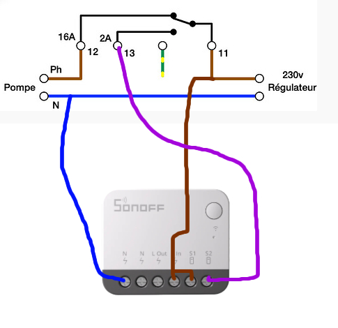 avec un module Sonoff ZBMini Extrême (j’en ai un disponible), quel serait le bon branchement pour L Out et L In si on met S1 en 11 et S2 en 13 ? Par contre, il ne faudrait pas qu’une éventuelle défaillance du Sonoff interfère avec le régulateur…