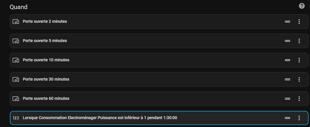 Mais quelque chose qui peut te servir en plus de surveiller la température du congélo par une sonde, dans le même automatisme je surveille aussi si sa conso est égale à 0 pendant plus d’une heure 30, en moyenne c’est plus une heure, mais en ce moment avec le garage très froid cela dépasse parfois une heure sans allumage.