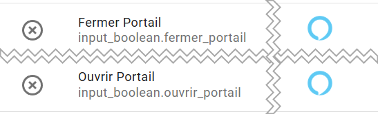 J’ai donc créer une entrée de type « Interrupteur » pour fermer le volet, nommée « input_boolean.volet_fermer_volet_sejour », et une autre entrée de même type nommée « input_boolean.volet_ouvrir_volet_sejour ».