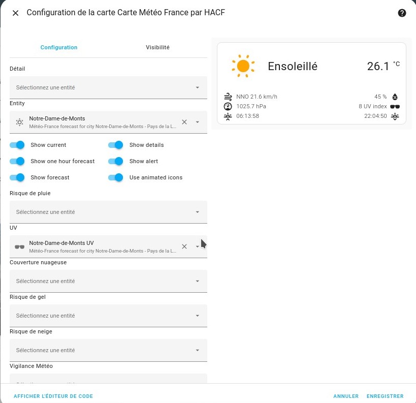 Tu vas dans HACS, puis clique sur la carte météo France. Puis les trois points en haut à droite et retélécharger.