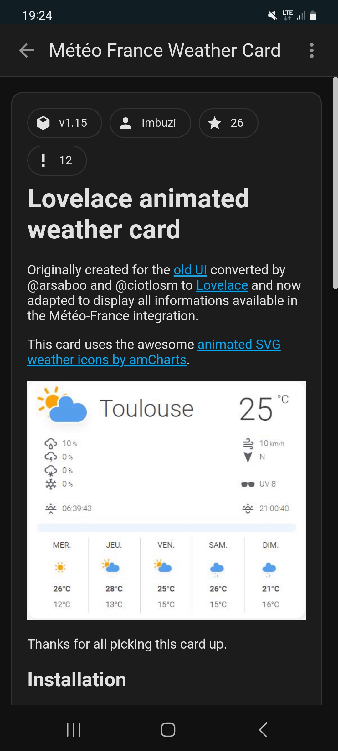 J’ai installé l’intégration Meteo France. C’est tout bon !