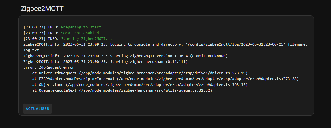 Il a fallu modifié le config.yaml de z2m pour qu il démarre.