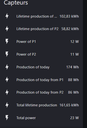 Le lifetime donne le cumul de production depusi le départ, le power donne la valeur instantanée