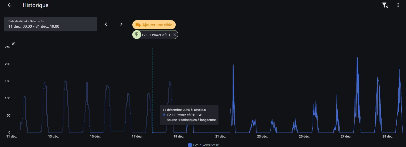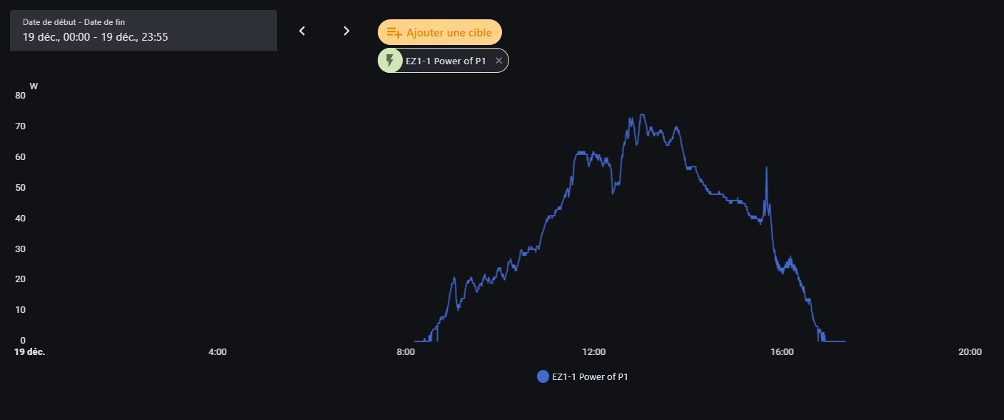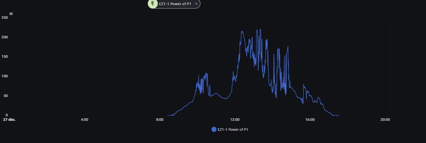 On voit bien que la production du panneau P1 est d’une même ordre de grandeur sur les courbes , mais que le tdb Energie a changé d’échelle !