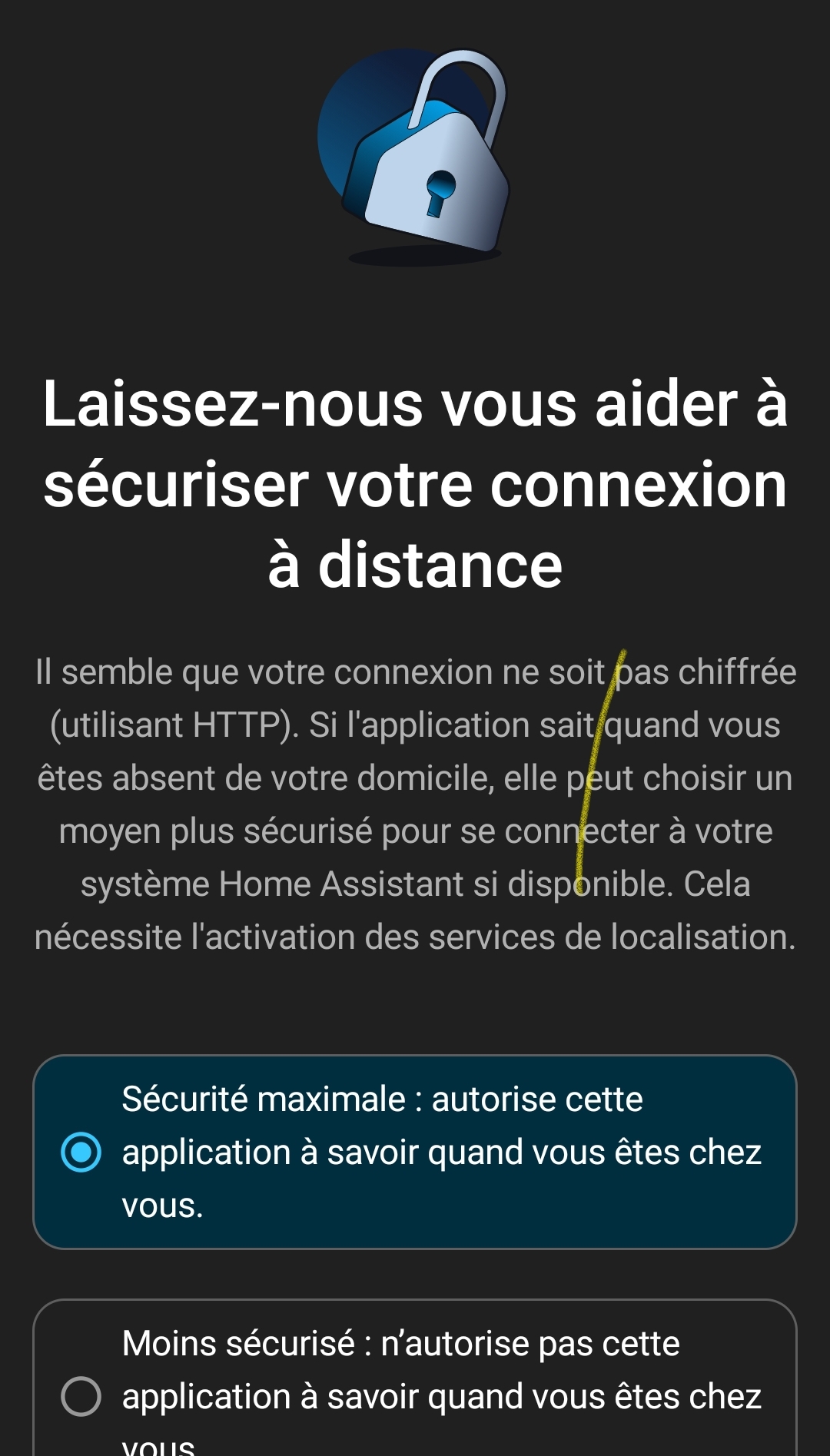 ce message est '‹ normal › lorsque tu es chez toi tu es en http tu n’as du https que lorsque tu es hors de ton domicile en 4G