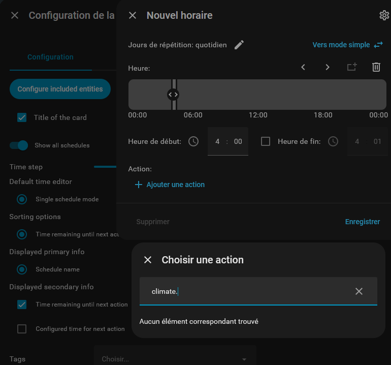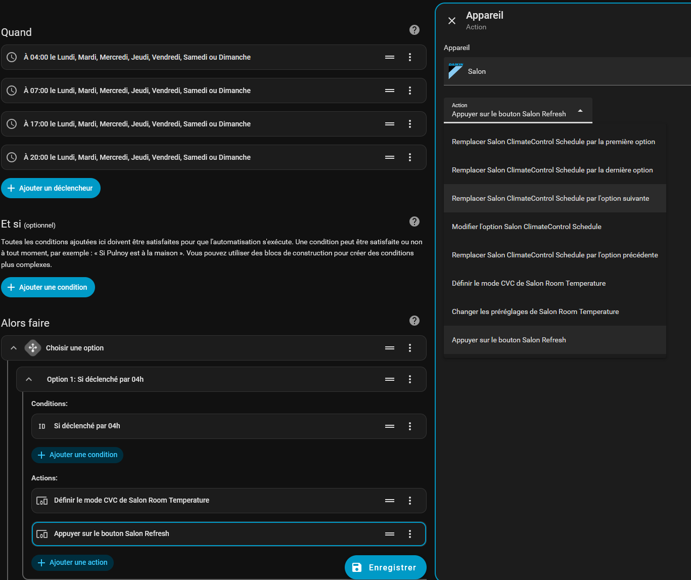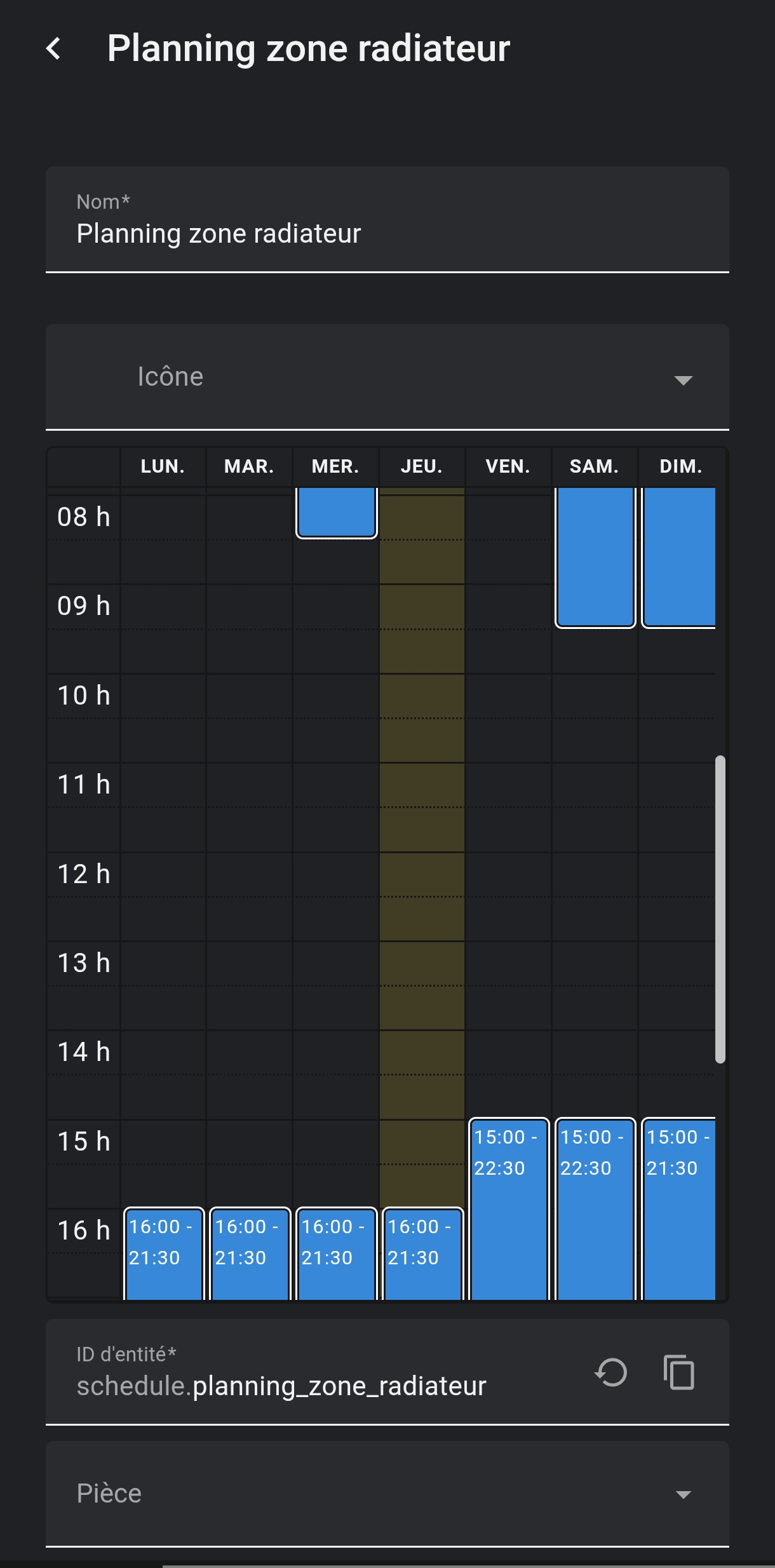 J’ai tenté de réaliser une automatisation de la mise en route de la PAC, ça reste quand même. Vraiment très lourd et peu visuel surtout si je dois mettre plusieurs plages horaires. Est-ce qu’il y aurait quelque chose de mieux ou de dédié pour ce genre de fonction ?