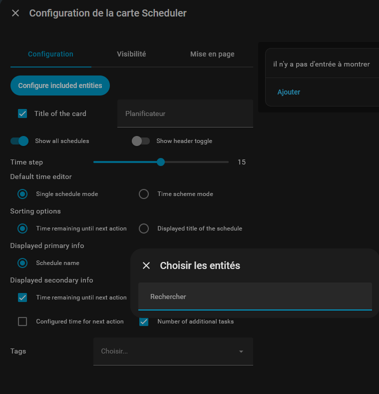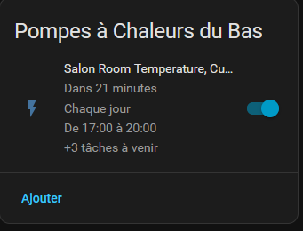 Par contre, pour mes pompes à chaleur, je vais rester le planificateur précédent. J’ai déjà beaucoup trop d’automatisations… De plus, le paramétrage se fait directement dans une seule carte.