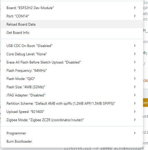 - Board : ESP32H2 Dev Module