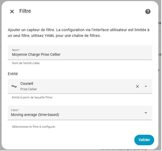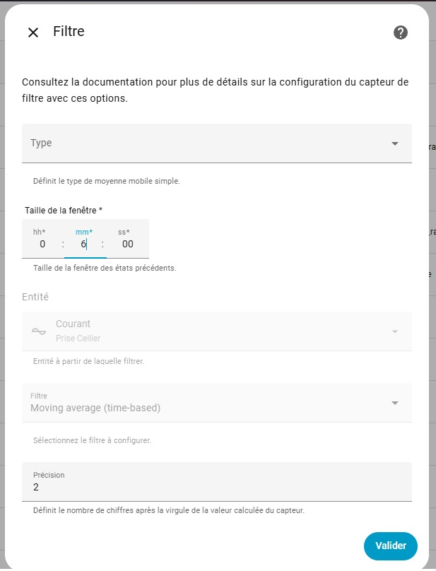 - une entité (Filter) correspondant à une moyenne sur un petit laps de temps,
