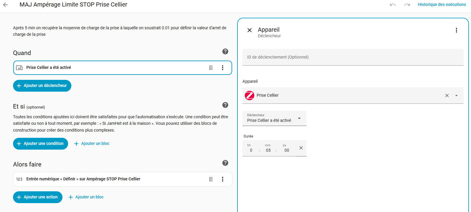 - une automatisation mettant à jour la valeur de coupure de la prise.