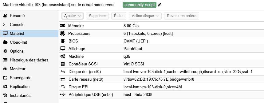 En plus, contrairement à ce qui est expliqué, la config du matériel de la VM HA ne semble pas indiquer qu’un disque de stockage additionnel lui ait été assigné…