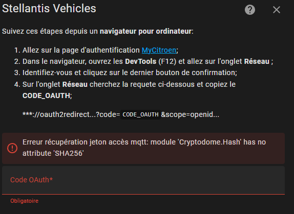 Je récupère bien la clé OAuth, code sms bien reçu puis mot de passe de mon compte puis bloqué!