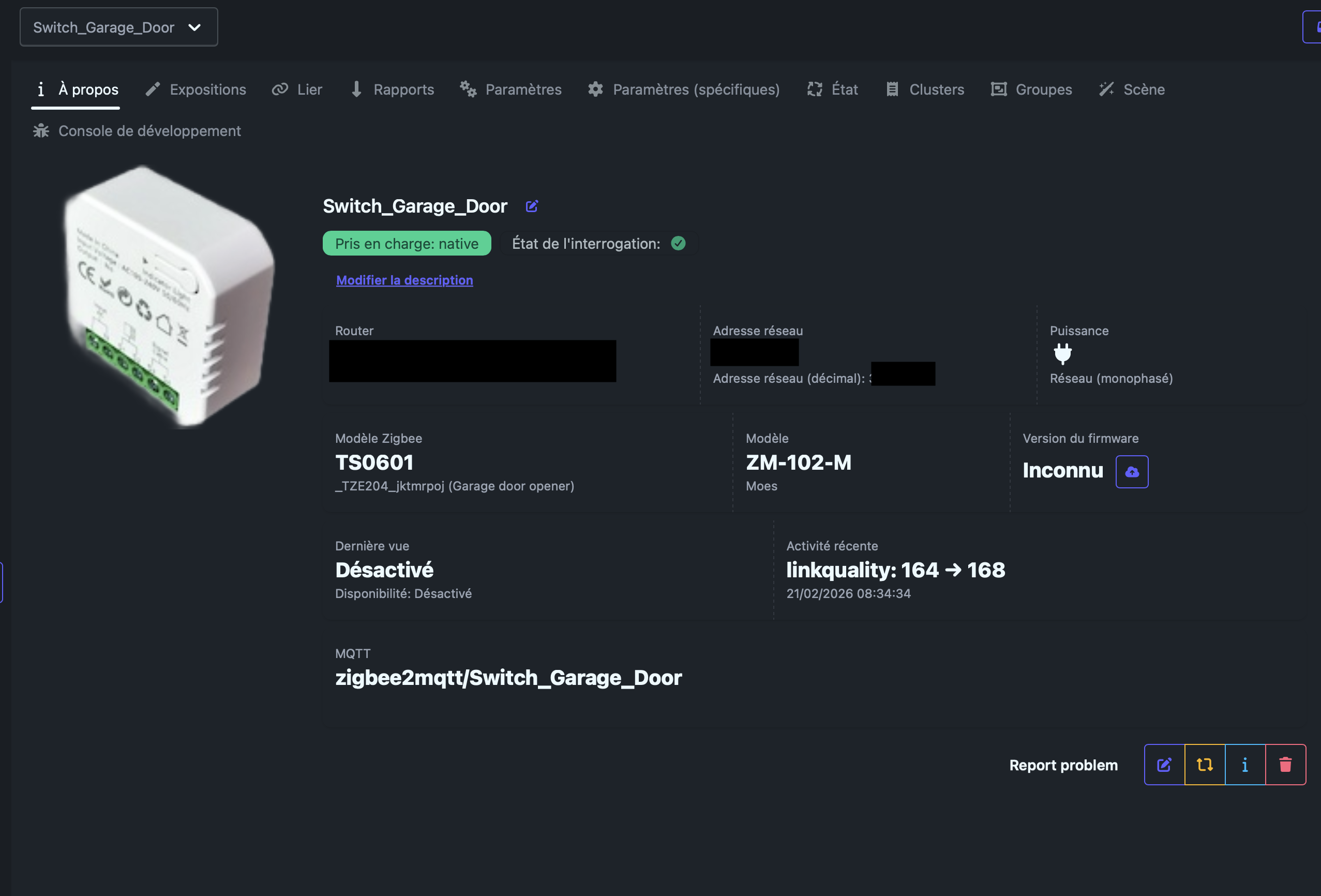 De mon côté j’ai fait une automatisation sous Home Assistant. Pour ressembler à une impulsion le contact sec est un interrupteur et au bout d’une seconde quand on le déclenche il revient à sa position off, ça semble marcher. Je vais ajouter un ou plusieurs détecteurs d’ouverture de fenêtre/porte pour avoir un retour sur l’état du portail.