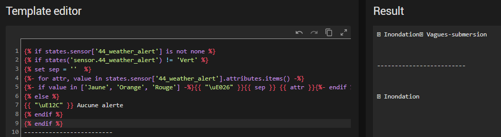 le template que tu m’avais fait, fonctionne bien, mais j’aurais voulu quand il y a plusieurs types d’alerte qu’elle soit séparé par un espace ou virgule. Dans l’état, c’est collé et pas super visuellement.