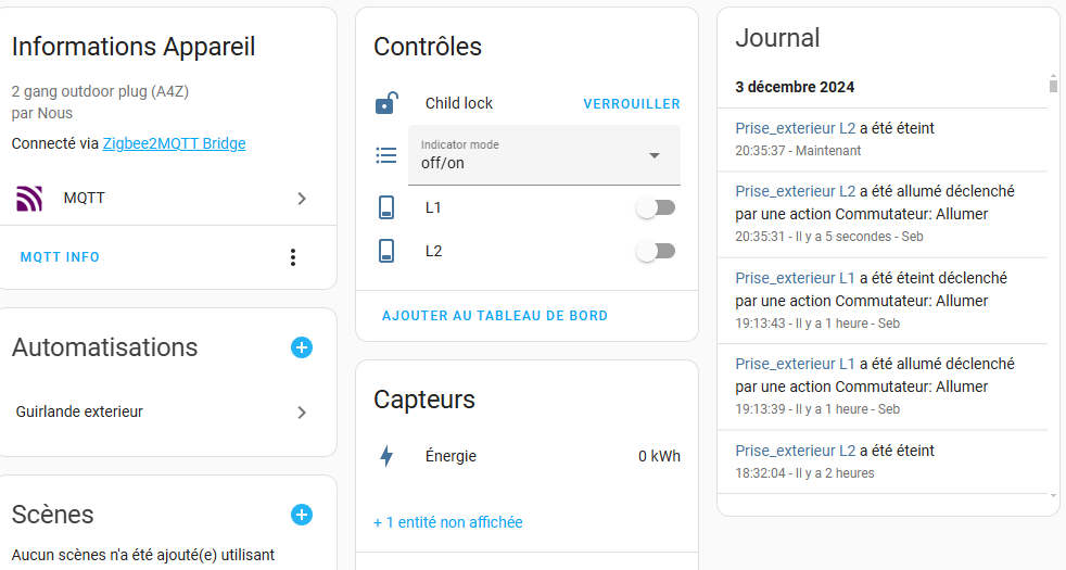 Je ne l’ai pas encore fait sur mon congélateur mais sur mon réfrigérateur j’ai installé un compteur. Ca va éviter une coupure non sollicitée…. Autre solution, des prises Athom qui n’ont pas de relais en ESPHome.