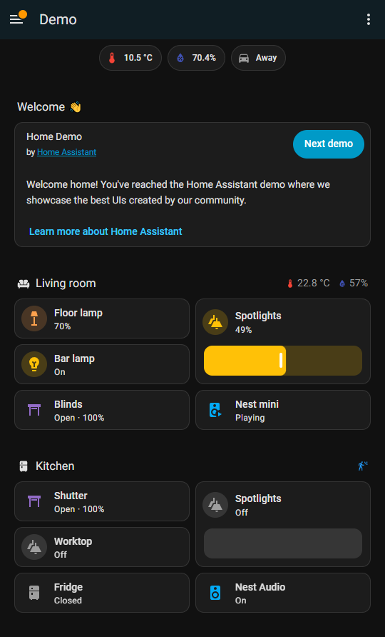 Avec les cartes core (genre cartes tuiles) voir même les nouveaux dashboards par defaut (home ou area) on arrive facilement à un résultat convenable.