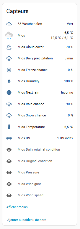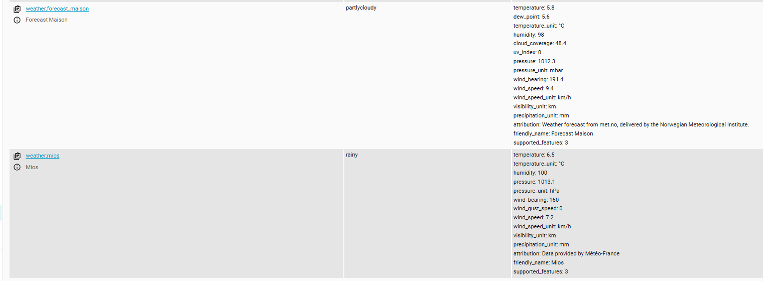 J’ai fait des test avec les intégrations Météo-France et Meteorologisk institutt (Met.no) mais je n’ai réussi à avoir un résultat probant.