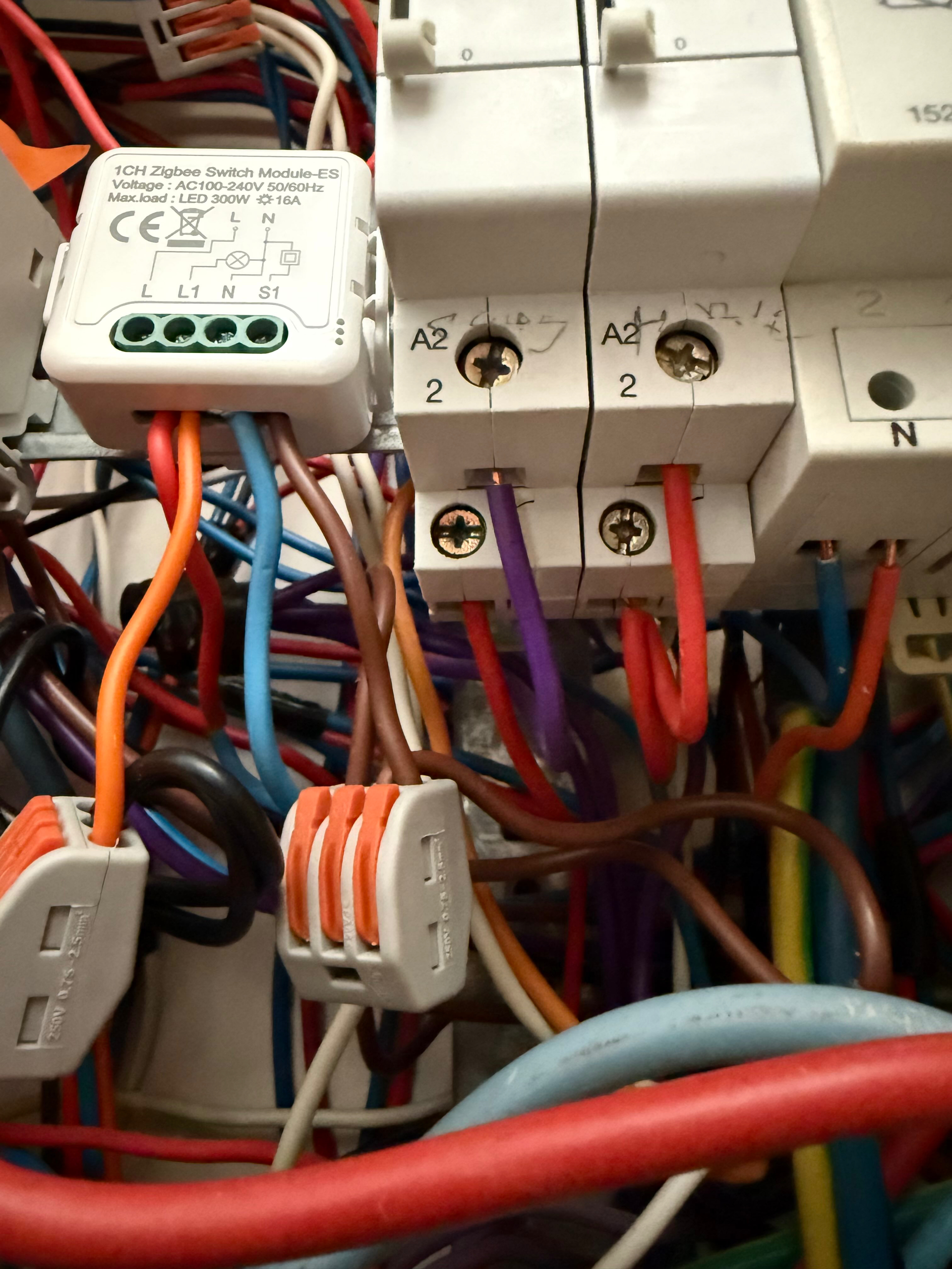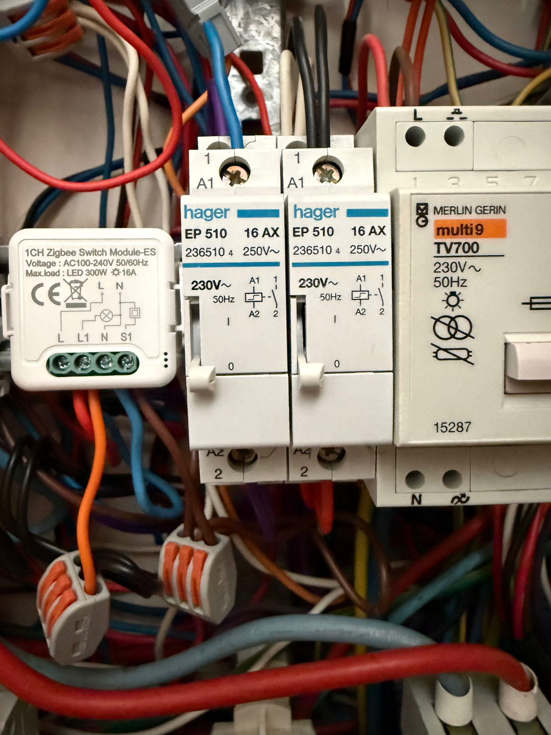 - Perso, je préfère laisser le télérupteur existant en cas de soucis du module, c’est plus facile à remettre en place.