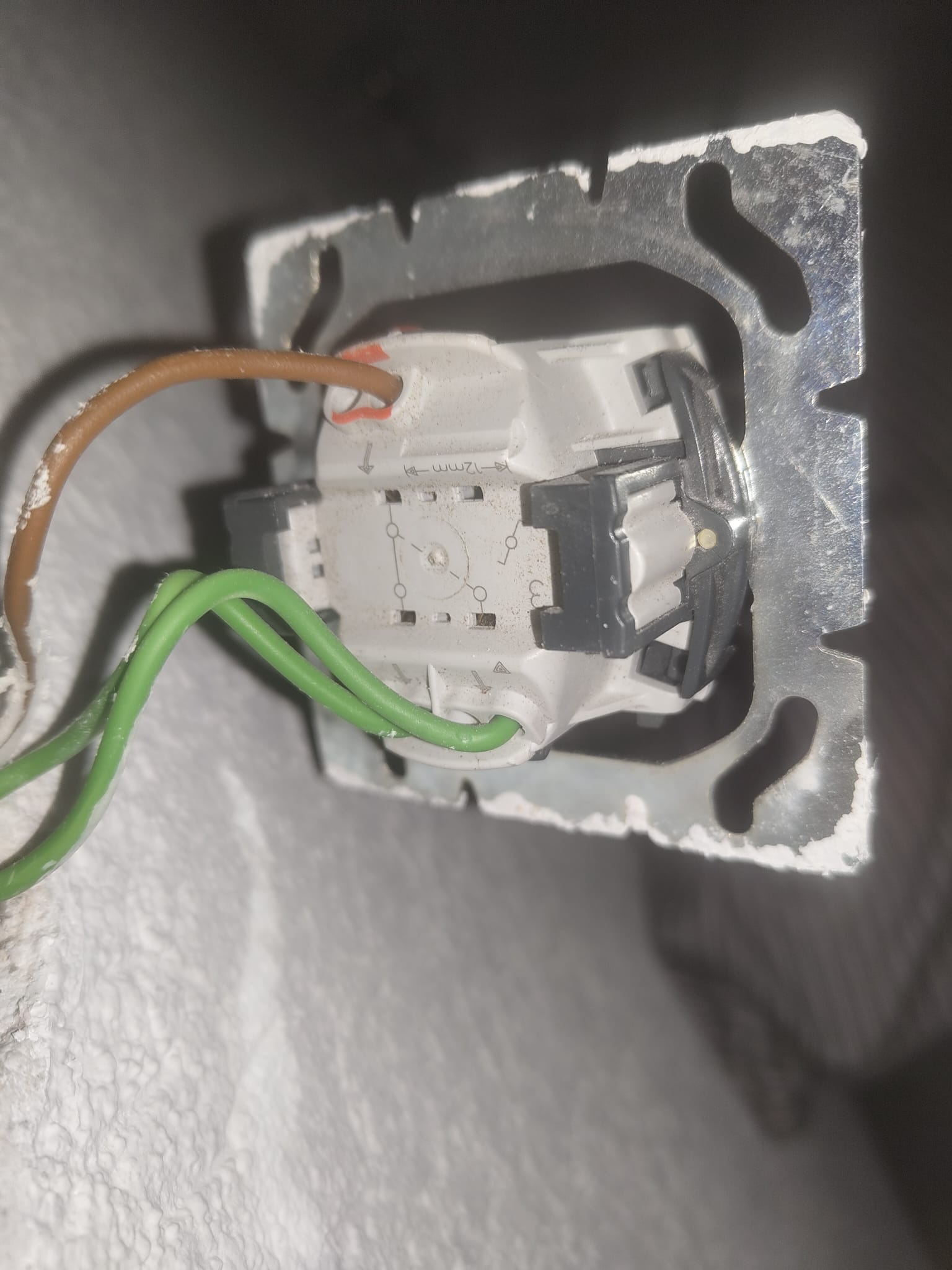 De ce que je crois avoir compris (ou pas), le courant arrive via le fil rouge sur la prise puis passe dans l’interrupteur.