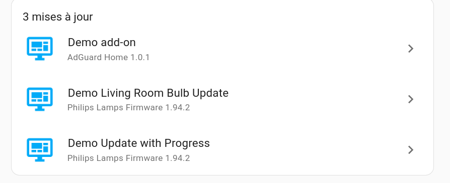 Par contre, j’ai un phénomène étrange, une fois le mode DEMO activé, HA me demande la mise a jour de 3 modules
