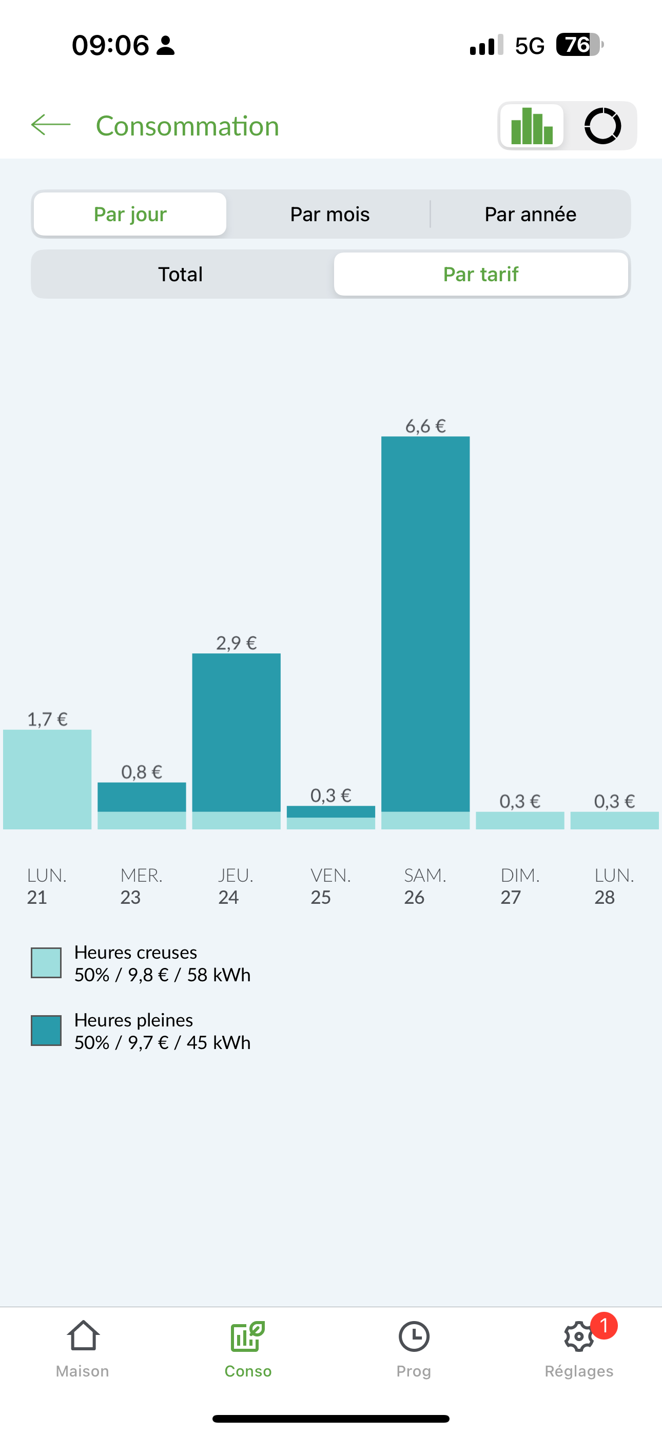 mais ds le suivi HA, je vois qu’elle chauffe qu’un peu à la fin des heures creuse (dc jamais 40€ d’heure pleine !)