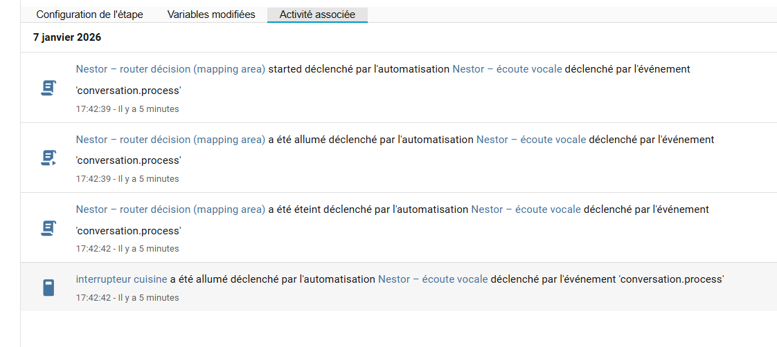 - Des améliorations possibles côté HA (validation, mapping, guardrails) ? (notament pour gerer un mapping d’entité dans une zone et les donner séparément dans le JSON, (concretement une façon de faire pour que HA sache quoi faire (si le jason renvoit { area =« kitchen » , action = " turn_on_lights"} ou { area =« bedroom » , action = " turn_on_lights"} il gere switch.lumiere_cuisine ou switch.lumiere_chambre, genre table de correspondance)