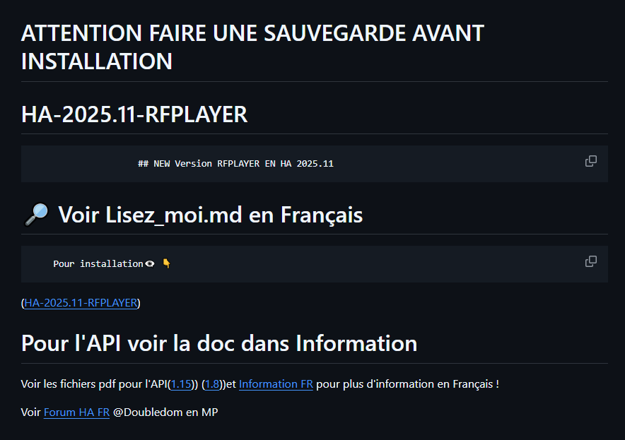 J’ai suivis ce fils et je ne pense pas que c’est un doublon : Plus de capteur RFPLAYER depuis 2024.3.0