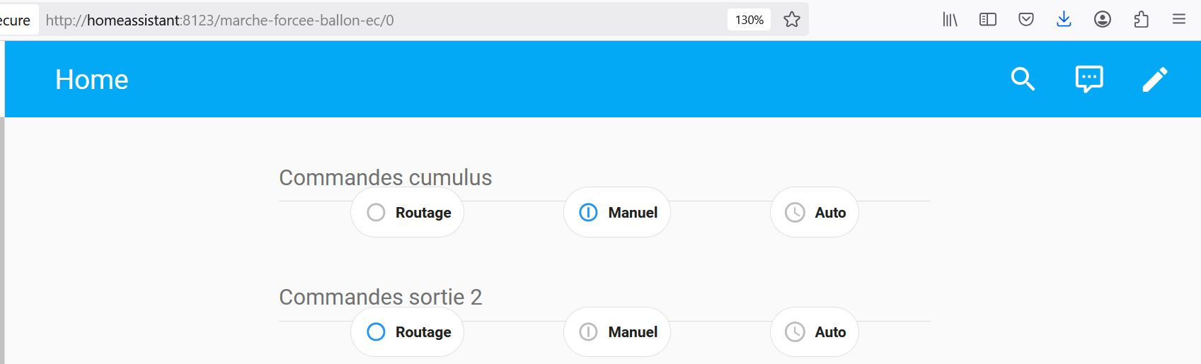 Si j’envoie la bascule Manu / Auto cela semble bien fonctionner avec cette carte. Coché Auto ou Manu et Zero sur test