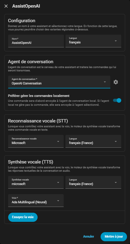 - Sache modifier mon HA de sorte que quand je lui demande d’ajouter une lampe à une pièce elle le fasse, ou que quand je lui demande d’automatiser une action elle crée cette dernière dans HA.