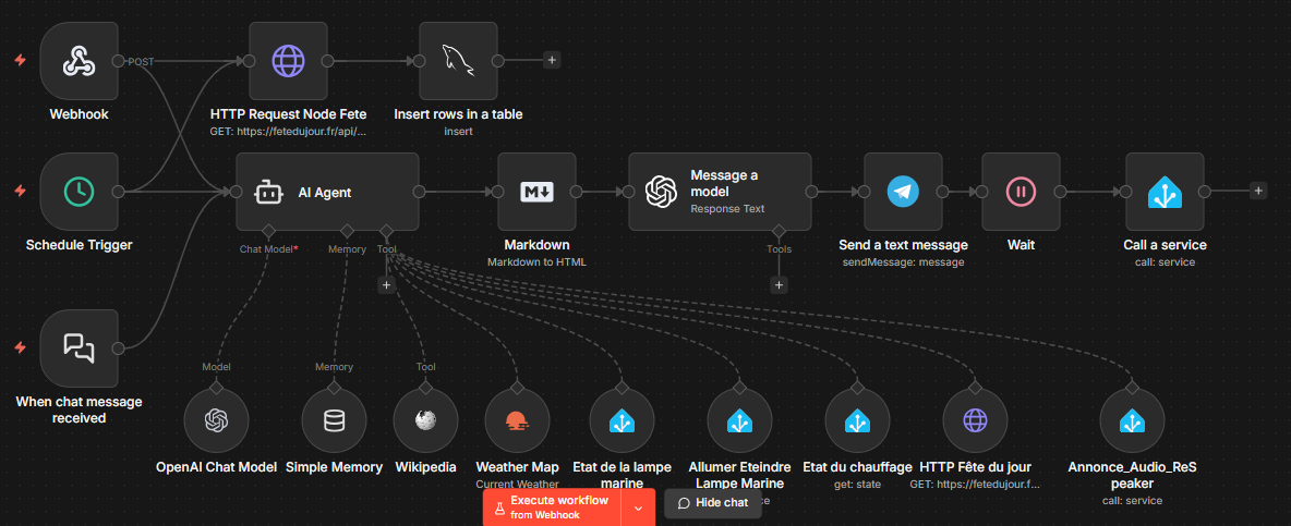 Mais je vous avoue que j’arrive à bout des solutions que ChatGPT et Deepseek me recommandent, j’ai été jusqu’à crée un « orchestrateur » en Python qui servirait de point d’entrée pour les requêtes IA et que c’est ce dernier qui gérerai la mémoire etc… Bref c’étais un bordel sans non et beaucoup trop complexe pour mes capacités ( JE NE SUIS PAS DEV