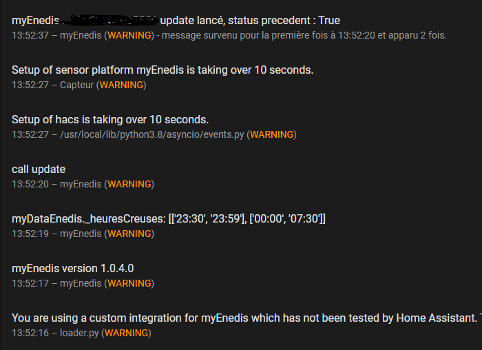 Maj faite mais est-ce normal tous ces message dans les logs de HA :