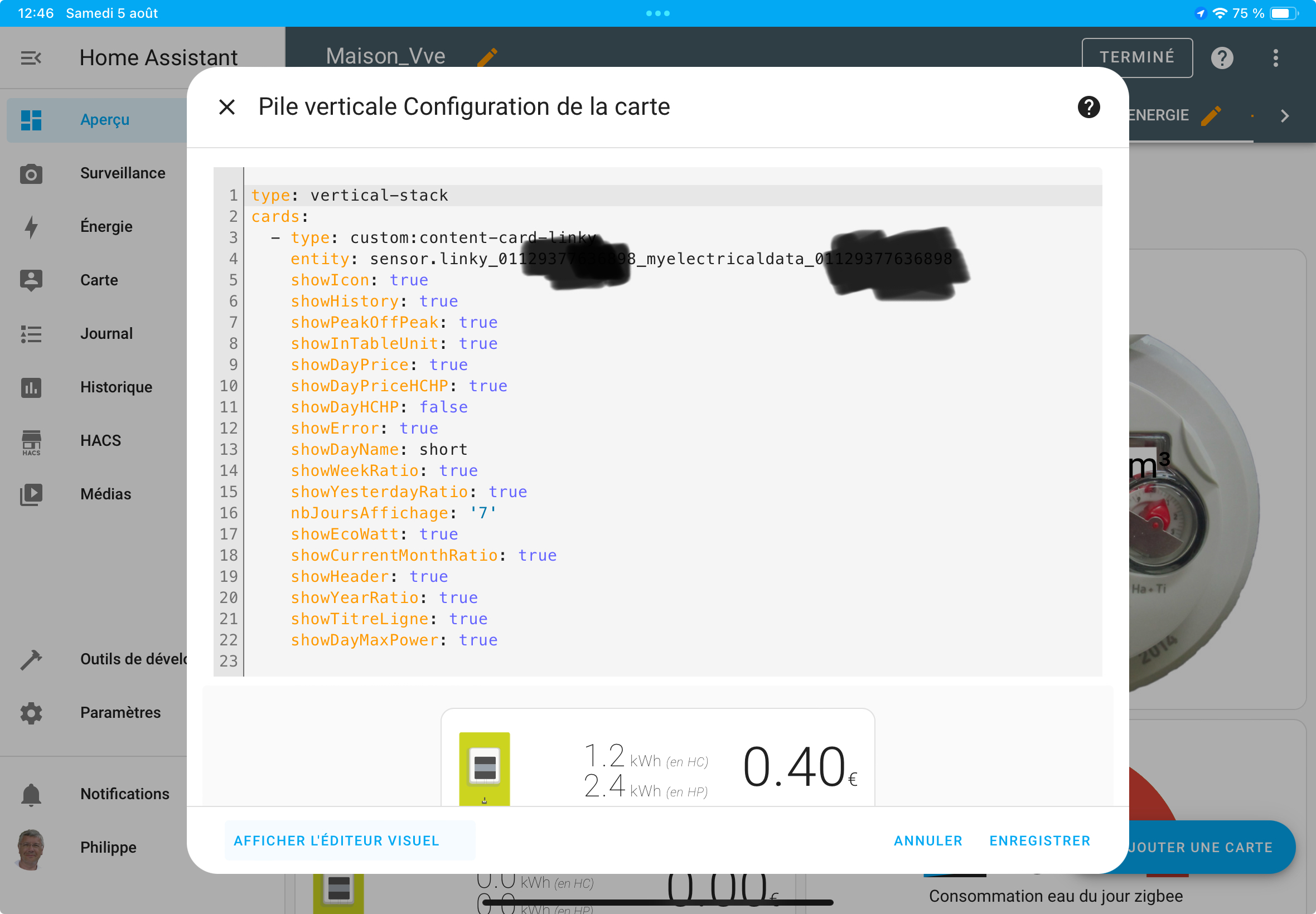 ok, mais le problème n’est pas la. Je n’est pas les infos ecowatt sur la carte depuis que je suis passer a MED. J’ai une entité ecowatt séparer de l’entité principe consumption.