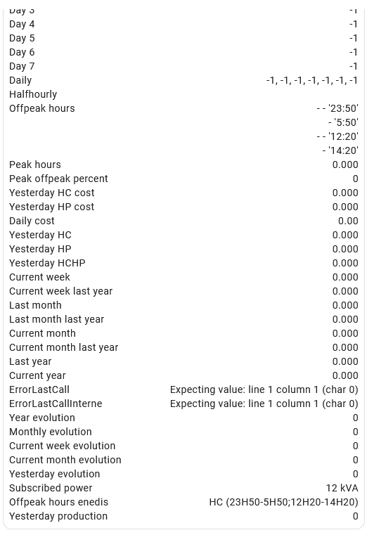 Faut passer par l’intégration MyElectricalData, par apienedis ca ne fonctionne pas.