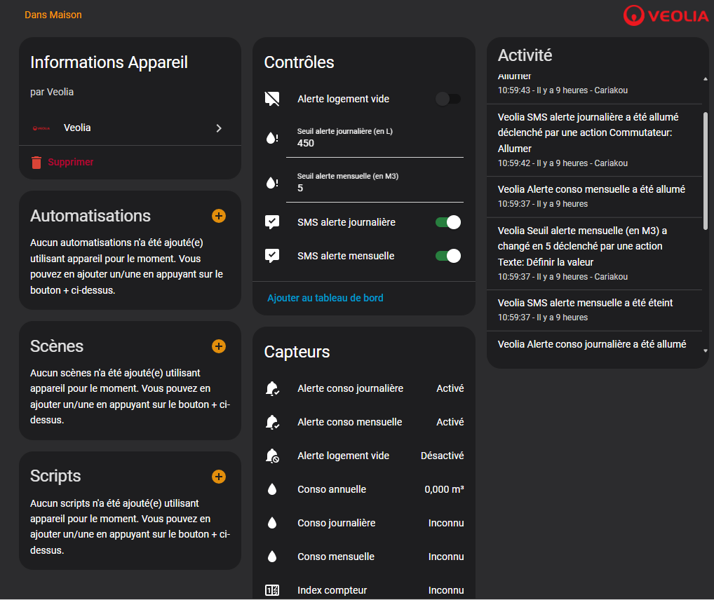 Débutant sur Home Assistant, j’ai installé l’intégration Veolia en suivant la documentation, mais je n’ai aucune remontée de données.