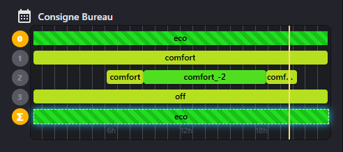 Et comme là il n’y a ni invité, que nous sommes en hiver que, je ne suis pas dans le bureau, ça applique/génère la combinaison qui ne contient que eco (issue de la ligne #0, en orange/active, par défaut)